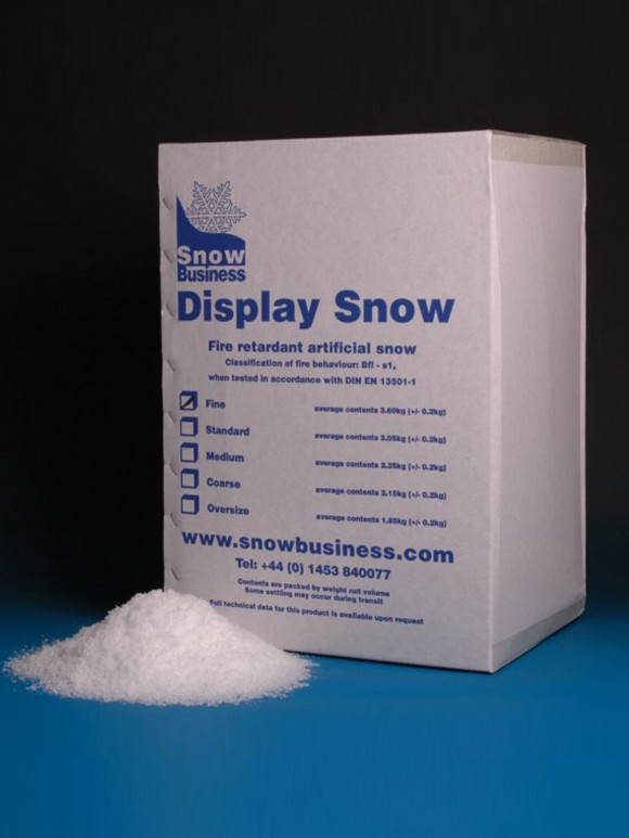 Piemērots viegliem sniega un sala efektiem, viegli notīrams ar ūdeni, viegli baltā krāsā, bet ugunsnedrošs – nelietot tiešas liesmas tuvumā.